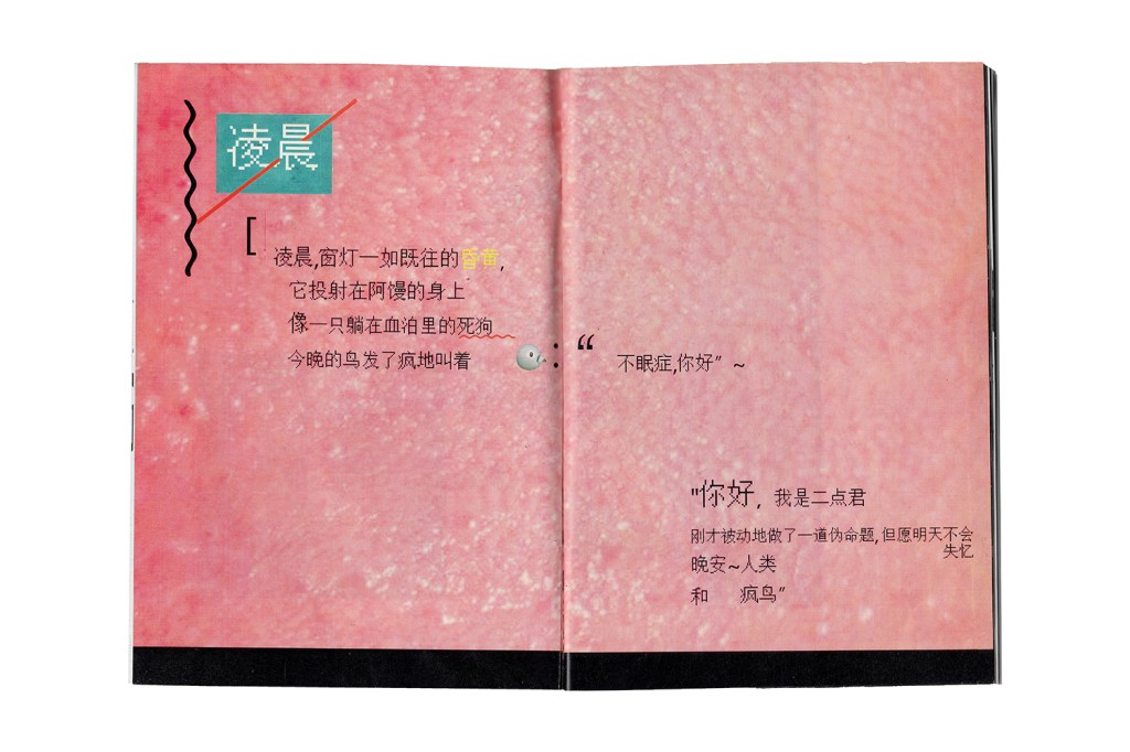 平日里喜欢记录每天的心情和感想,这本书在文字和插图的排列上做了一些尝试,希望可以通过这样的排列还原文字的情绪,或超出文字本身的意义。